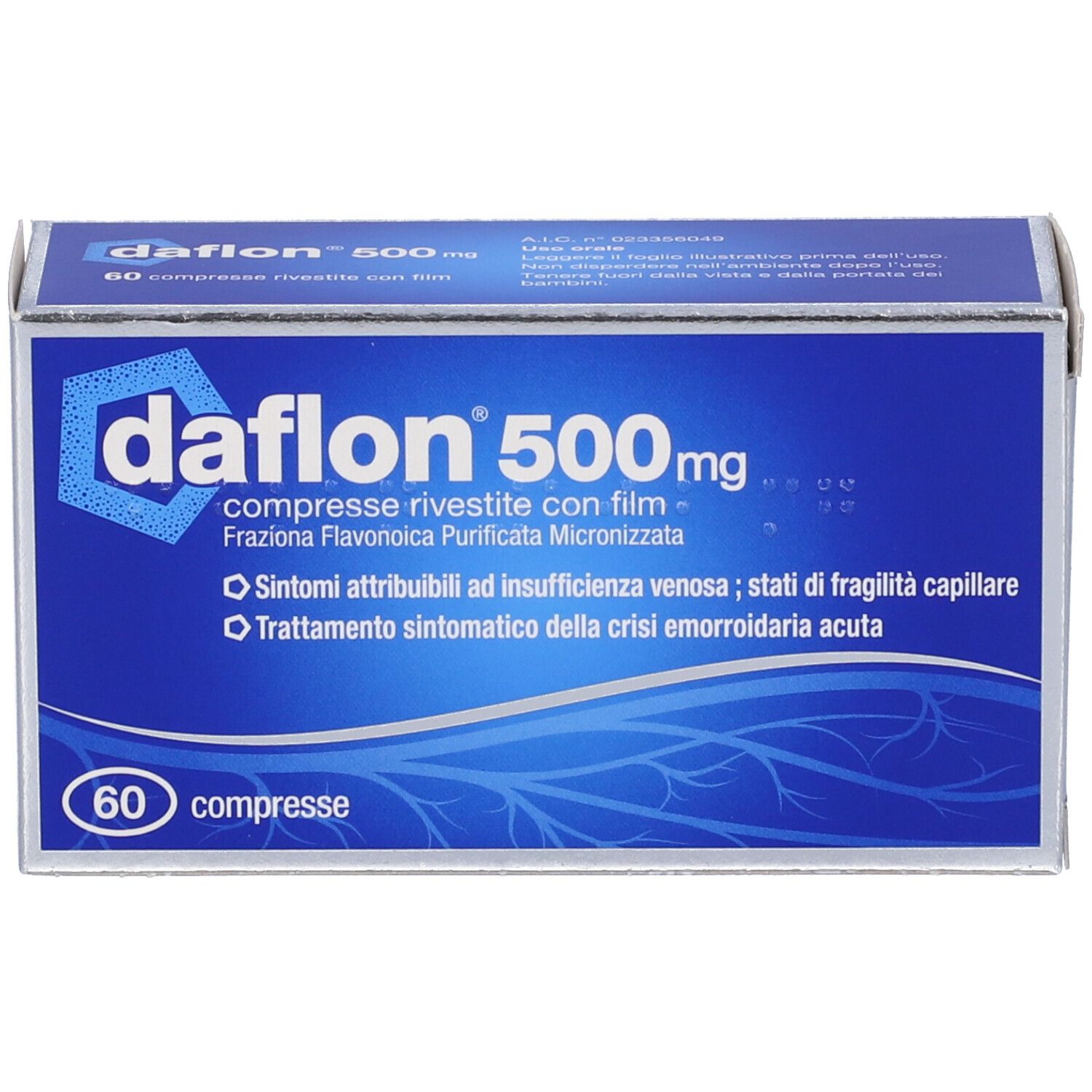 Frazione flavonoica purificata, micronizzata 500 mg costituita da diosmina 450 mg flavonoidi espressi in esperidina 50 mg.